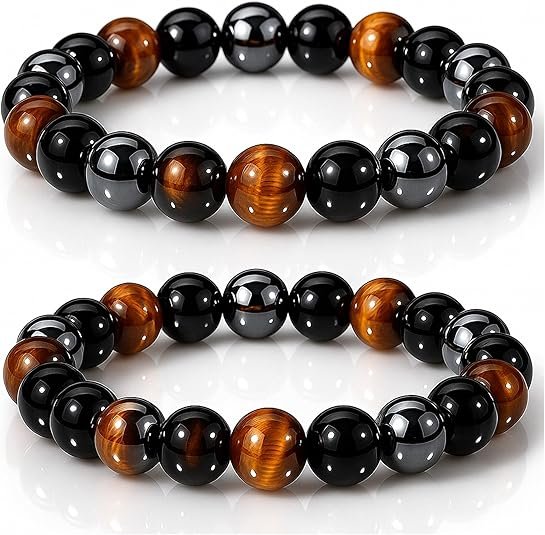 WFJ Black Obsidian Hematite Triple Protection Bracelets Set –